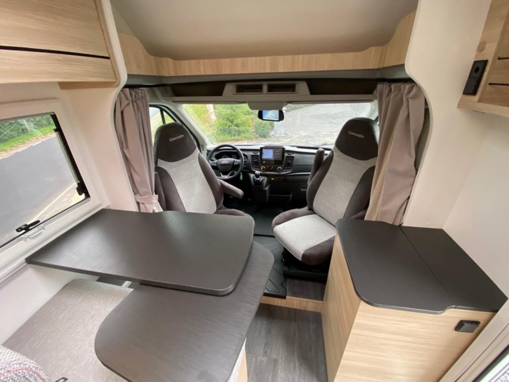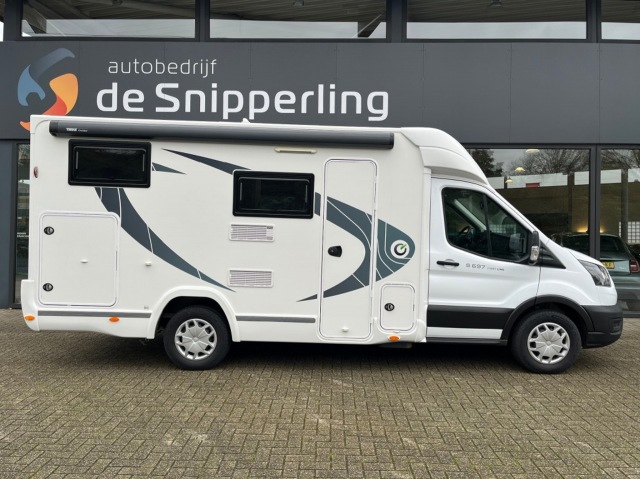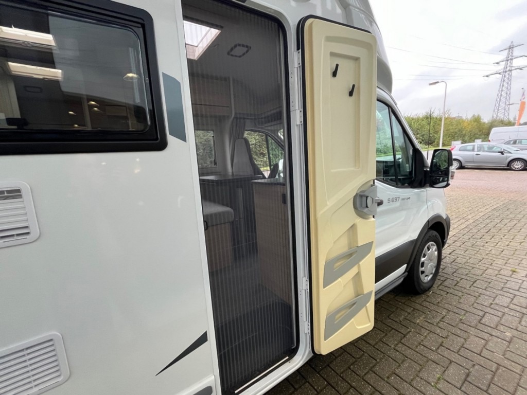Deze Chausson 697 S is voorzien van het First Line pakket, bestaand uit; Manuele airco in cabine, Cruise control & snelheidsbegrenzer, Dubbele airbag, Elektrisch verstelbare en verwarmbare spiegels, Draaibare cabine zetels in hoogte verstelbaar met dubbele armsteun, Voorbereiding aur camera in binnenspiegel, Radio – antenne DAB voorbereiding, DAB + / Mp3 / Bluetooth radio, Verwarming op brandstof tijdens het rijden met programmeerbare digitale regeling, Panoramisch dakraam, Hordeur, Dubbelglas ramen met verduistering- en muggen-hor, Scheidingsgordijn cabine/woonruimte, Ingebouwde en geïsoleerde cellenlaag, Binnen- en buitenverlichting dat 100% LED (woonruimte), USB-stekker.