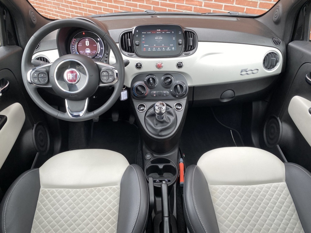 Nette Fiat 500 met een zuinig 1.0 70 pk hybride benzine motor. Deze origineel Nederlands geleverde Fiat 500 is o/a voorzien van airco, cruise control, Apple Carplay en Android Auto, panorama dak, DAB radio, parkeersensoren en lichtmetalen velgen.